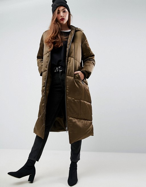 asos khaki longline puffer coat