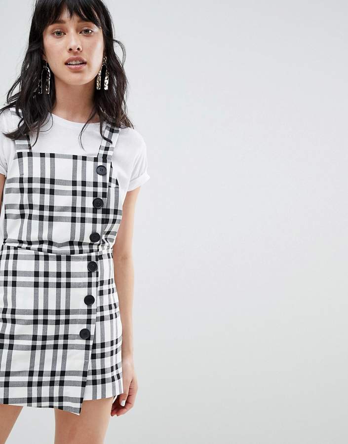 stradivarius check dungaree dress