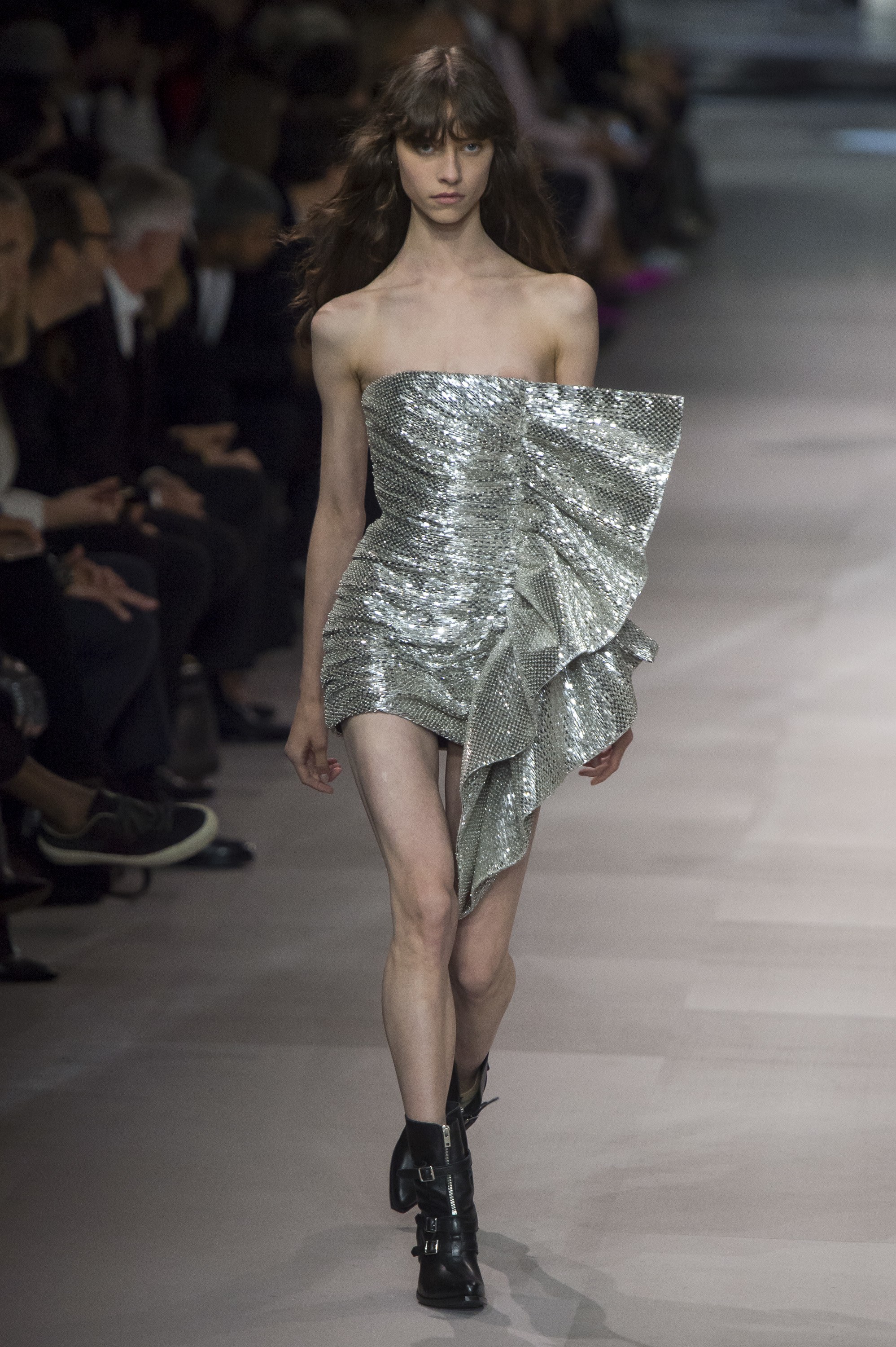 Slimane’s identifiable style. Above Saint Laurent Fall 2016 and below Celine Fall 2019 via Vogue